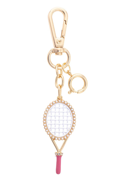 Pearl Studded Tennis Racket Bag Charm in Pink