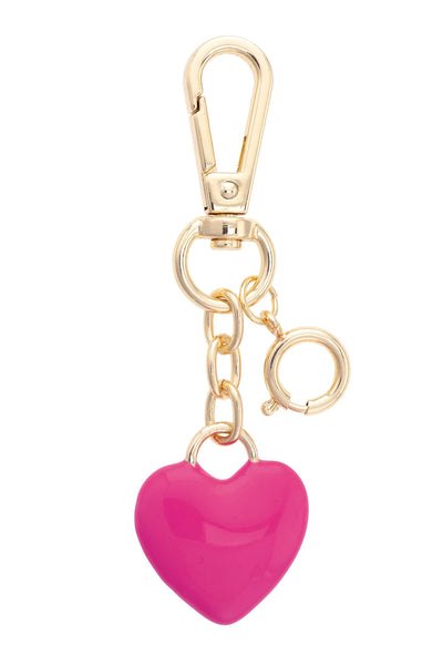 Puffy Enamel Heart Bag Charm in Fuchsia