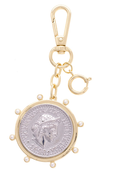Studded Coin Bag Charm in Shiny Two Tone