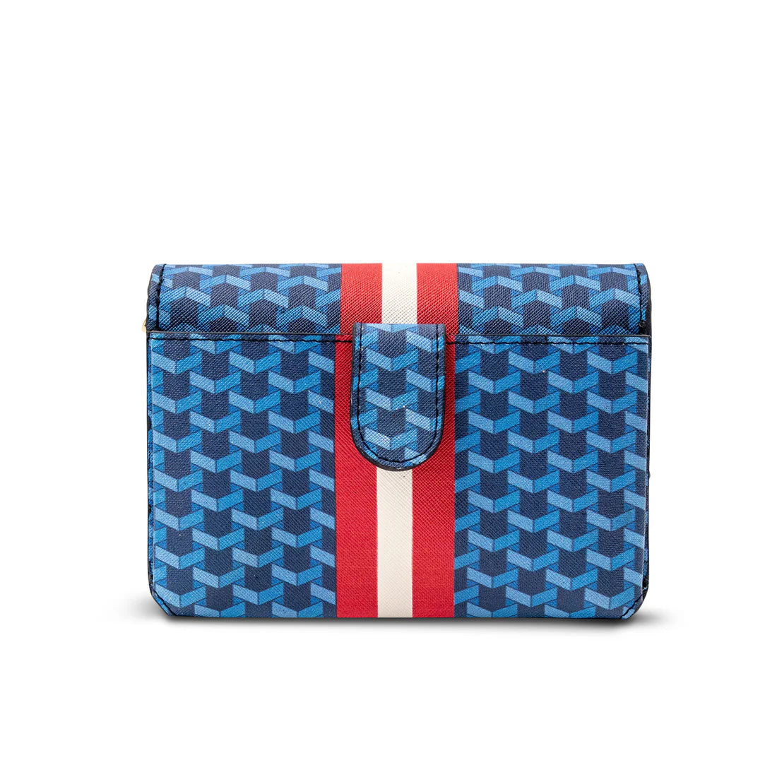 The Main & Exchange stadium bag meets clear bag policy requirements at 4.5 x 6.5 inches. Each bag is made of high quality vegan leather and features an adjustable crossbody strap with gold buckle detailing. Other features include velveteen lining, a front slot pocket, an interior zip pocket, 3 card slots, and a cell phone pocket on the back.